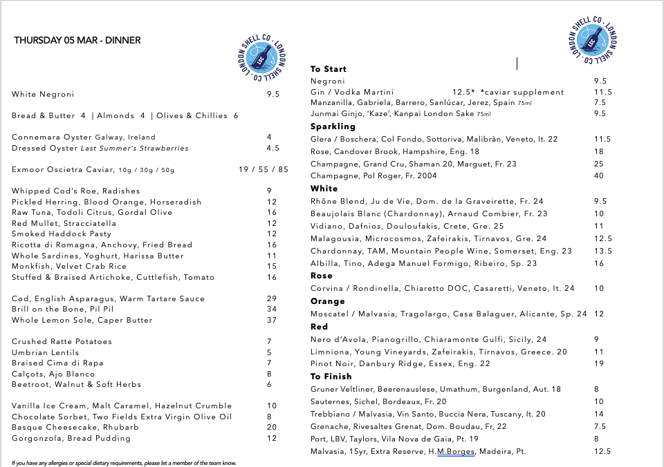 Founded by siblings Leah & Harry Lobek in 2015. London Shell Co. on Swain's Lane opened in 2023 and fast became a focal point of our neighbourhood. We are a beautiful fishmongers and restaurant right on the edge of Hampstead Heath. We cook great food, pour great wines and take exceptional care of our guests.